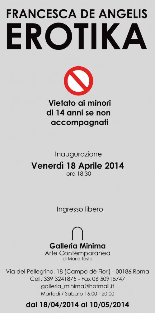 La Galleria Minima dal 18 Aprile al 10 Maggio 2014, ospiterà le opere di Francesca De Angelis in una mostra personale dal titolo "EROTIKA".