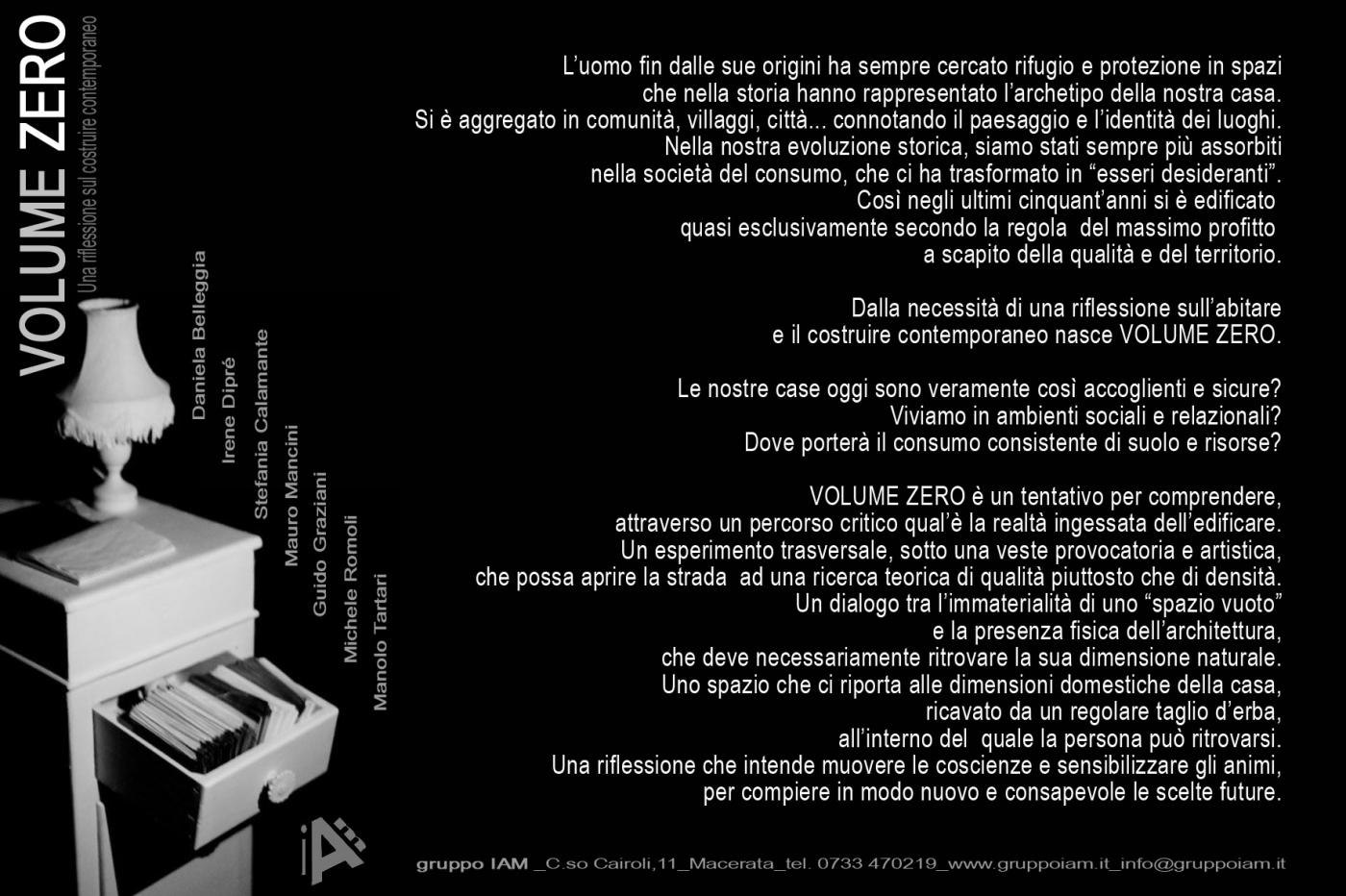 Dalla necessità di una riflessione sull’abitare e il costruire contemporaneo nasce l' installazione “VOLUME ZERO”. Che cos'è volume zero?