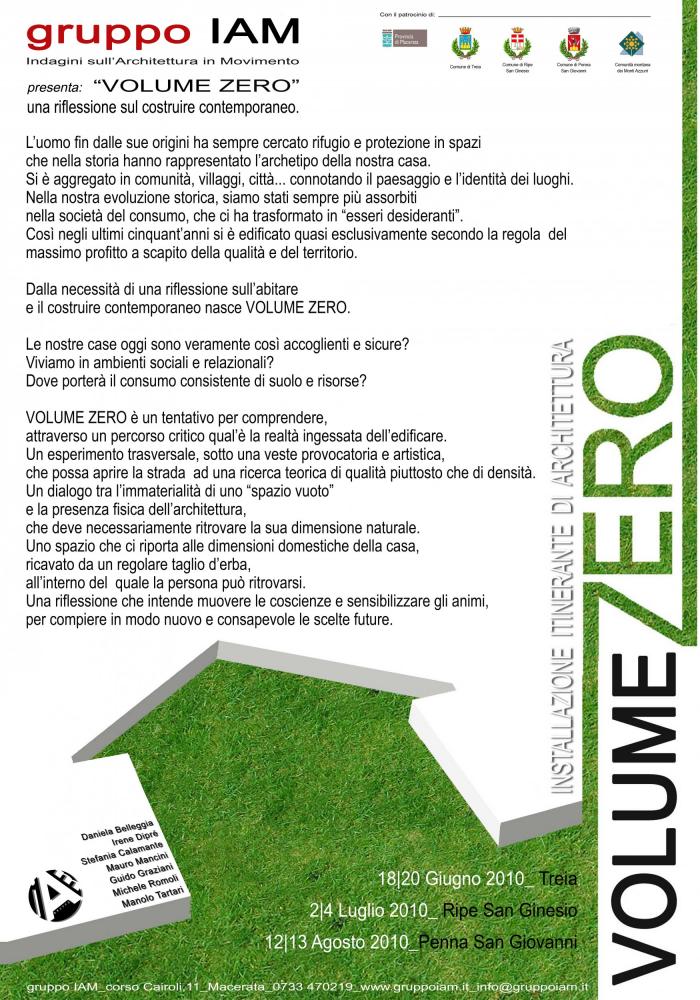 L’uomo si trova immesso, seppur per un attimo, in un contenitore virtuale, quasi impercettibile, costruito al contrario per asportazione di materia,un Volume Zero, nel quale l'unico richiamo alla realtà è dato da mobili “fantasma”.