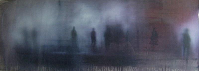 Un universo liquido nel quale si sciolgono paesaggi lunari e periferie urbane, percorsi da una figura umana che cammina leggera e silenziosa nella notte, suggerendoci l’incipit di una storia sempre nuova.