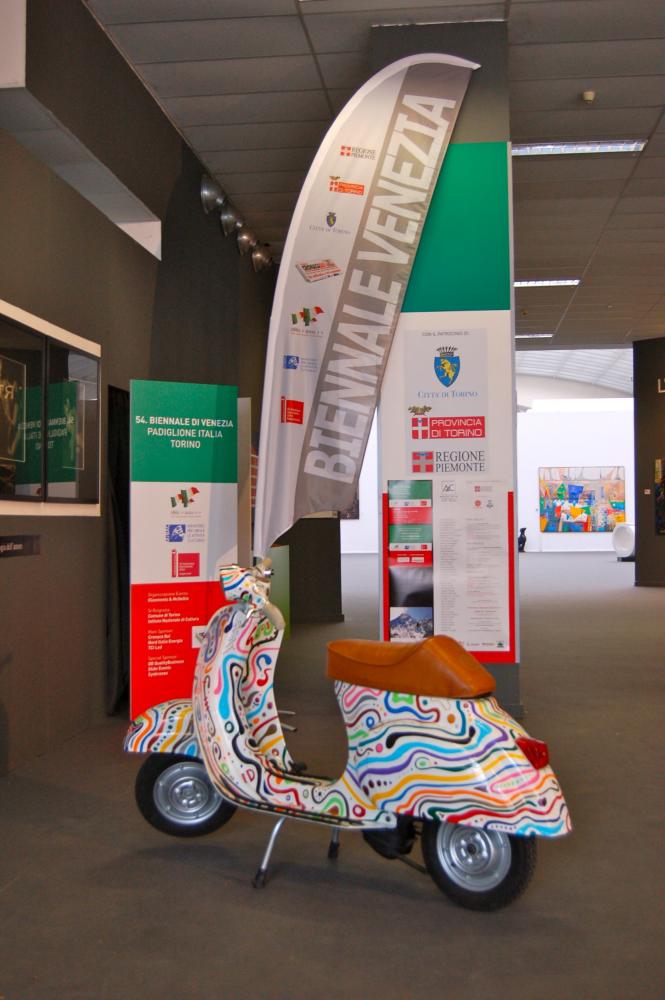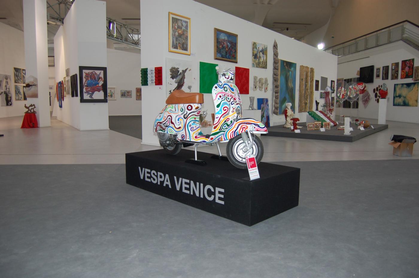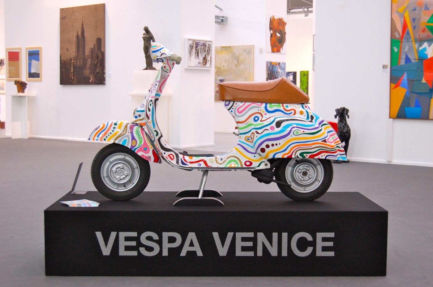 L’opera, una Vespa 50 del 1967, è rivisitata con estro e fantasia in chiave Pop attraverso una personale ricerca e studio dei colori, scintillanti e briosi, risultato dell’immaginifico dell’artista che ne cura alla perfezione ogni dettaglio.