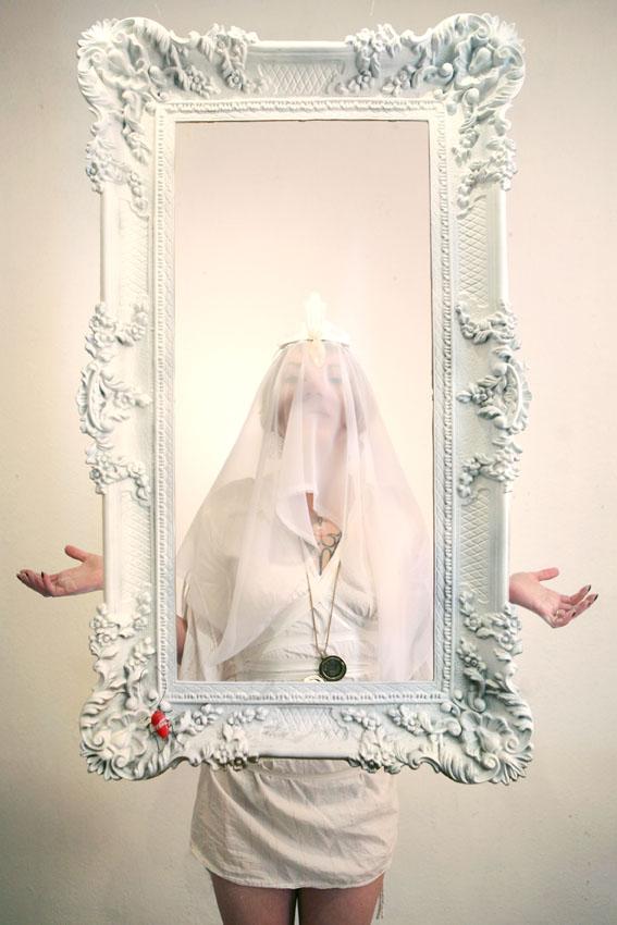 Extreme bodyart used for talk about female conditions, especially the secret about our relation with the blood. It's a performance that contains a lot of symbols and metaphoric meanings talking about the feminine world : the mother widow that guides the daughter bride along the walk of life.