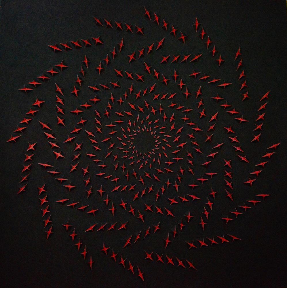 E’ in questo clima che l’artista dà vita alle sue prime Superfici in rilievo, manifestando chiaramente la sua propensione verso un fare artistico rigoroso, analitico, costruttivo e progettuale. Come possiamo ben vedere dalle opere in mostra, l’artista non riflette sugli elementi basilari della pittura ovvero la linea, il punto, la pennellata o il colore, ma è sulla forma, la superficie, la tela ed i supporti rigidi e da ciò che se ne può ricavare tagliando, piegando e sovrapponendogli stessi elementi i quali diventano fulcro della sue indagini artistiche nonché gli elementi fondanti le opere stesse.