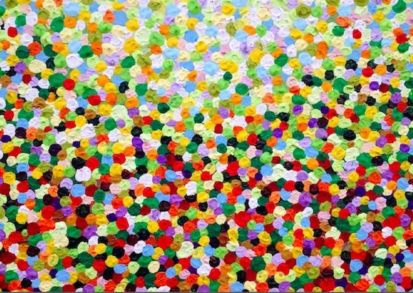 Le opere esposte, pur appartenendo a tre serie diverse, hanno lo stesso filo conduttore: “L’Armonia degli Opposti”. Rappresentano idealmente la società contemporanea nella sua globalità; una società in cui gli individui/colori interagiscono esaltandosi reciprocamente e convivono in armonia attraverso regole condivise. In PETALS l’elemento materico viene esasperato in maniera aggettante al fine di stimolare subliminalmente quel contatto necessario, ma spesso esclusivamente virtuale; in SCRAP all’elemento materico si unisce un valore etico essendo stati realizzati con pigmenti di scarto; in DROPS si passa dalla tridimensionalità alla bidimensionalità immaginando un’ indagine introspettiva attraverso la natura del segno (pixel) ed una evasione attraverso la sua ripetitività.