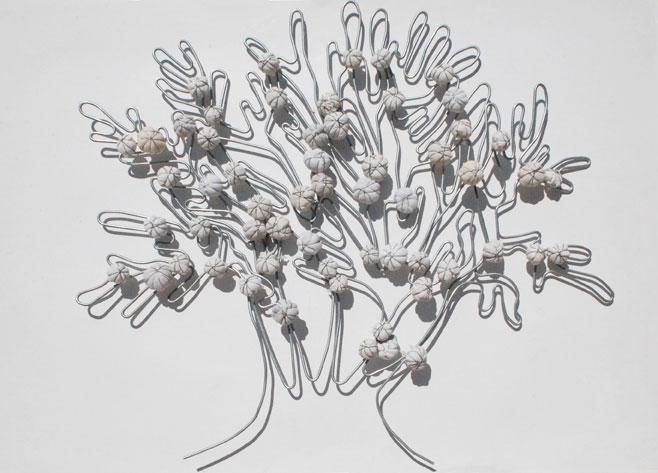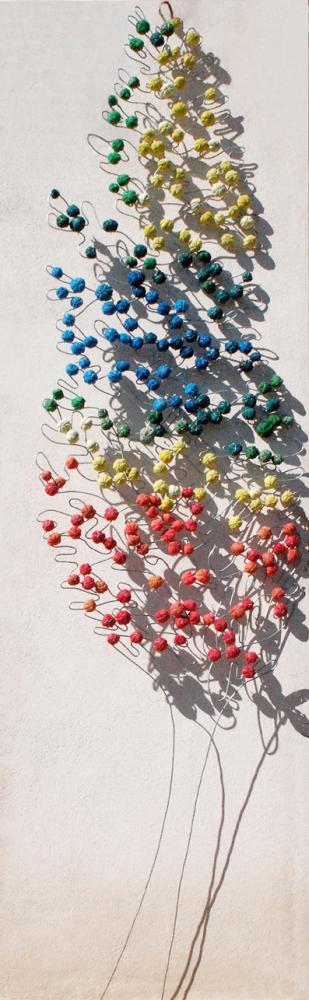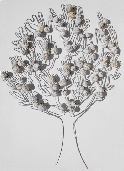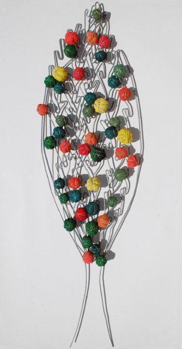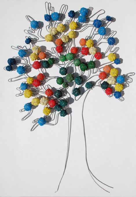 Come i vestiti, anche i calzini o tessuti vari, vengono appallottolati e compattati con una scheletratura di ferro zincato, poi immersi in resina per una conservazione inalterata nel tempo. Il “mondino” risultante è metafora della cellula da cui tutto è scaturito, conserva in sé la memoria del vissuto e diventa mattone vivo da cui ripartire: Energia , Vita e Risveglio della ragione che generano bellezza!