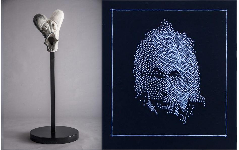 In questi ultimi lavori plasma la materia per creare teste con enormi bocche intente a blaterare.