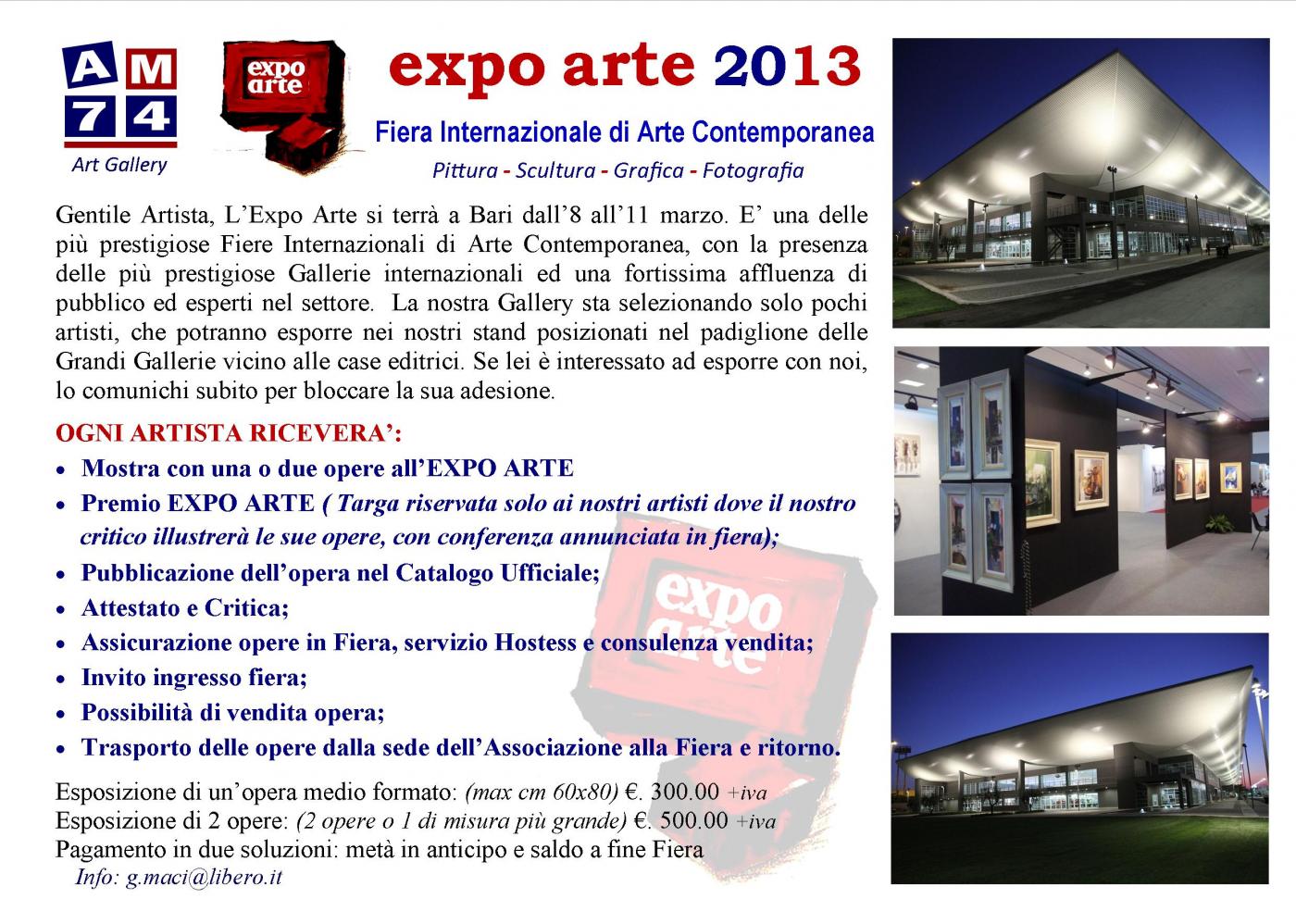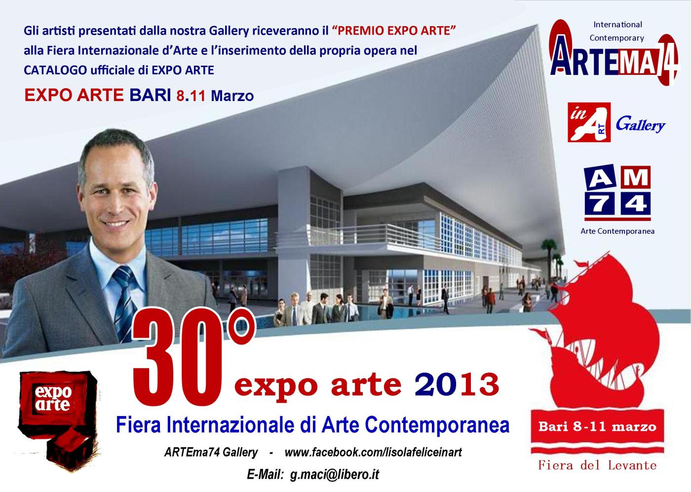 ENTRA ANCHE TU IN EXPO ARTE! Se sei un artista non puoi mancare alla Fiera d'Arte Contemporanea, a Bari dal 8 - 11 marzo, 30° edizione. Esponi nei nostri stand!