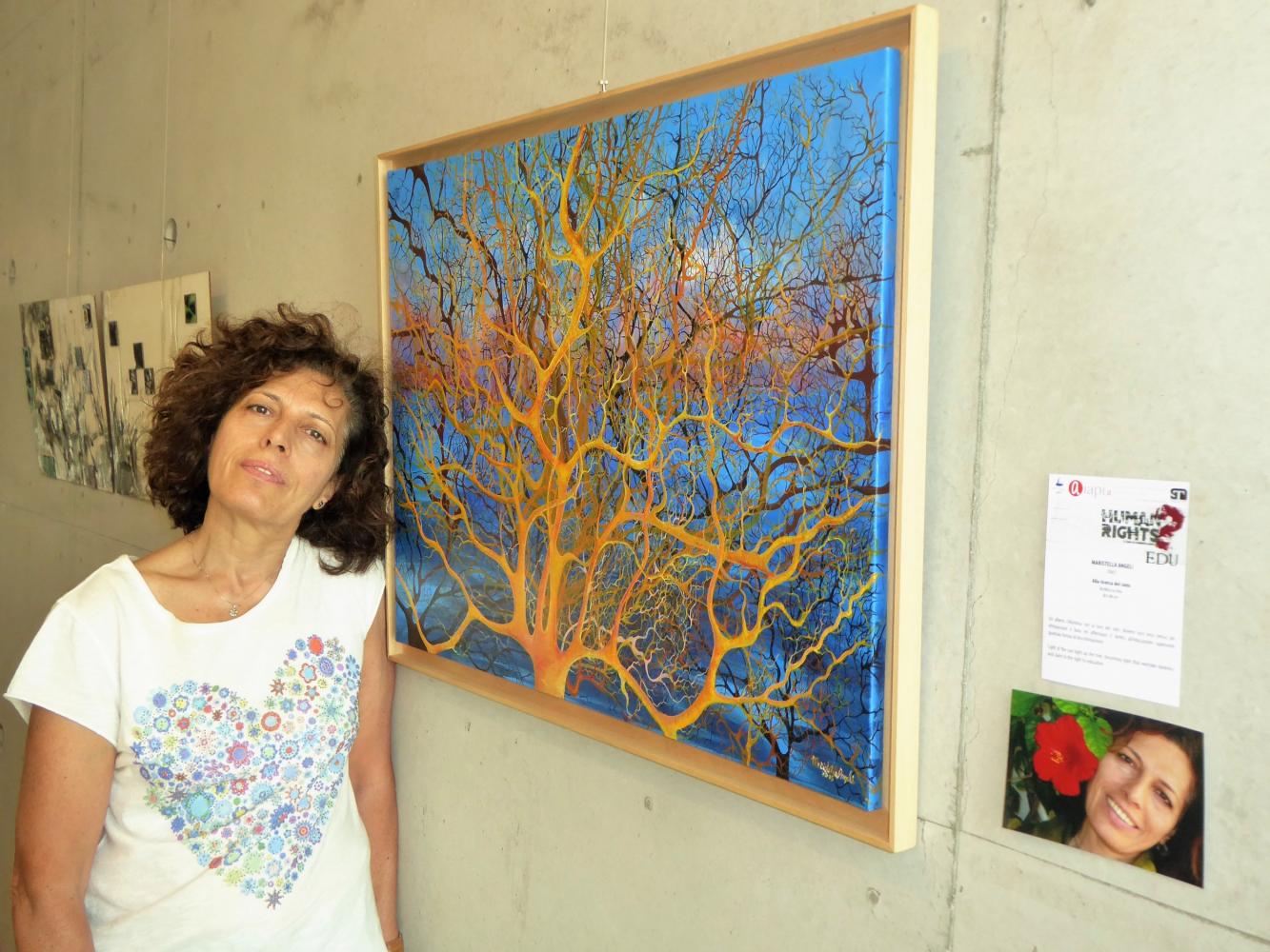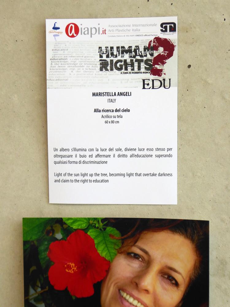Ho provato una grande emozione nel vedere il mio dipinto “Alla ricerca del cielo”, insieme alle opere di artisti di livello elevatissimo, partecipe di un messaggio artistico forte e tangibile espresso nelle modalità e tecniche diverse, unite dalla tematica portante: 161 artisti da 37 Paesi.