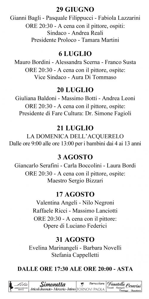 Art.3 - L’iscrizione all’estemporanea può essere effettuata dalle ore 9:00 alle ore 11:00 di ogni giornata segnata come da programma a fianco compilando il modulo di iscrizione che vi verrà consegnata la mattina stessa.