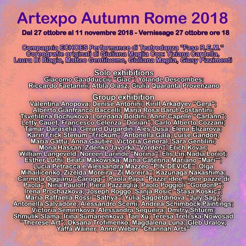 Artists for Artexpo Autumn Rome 2018