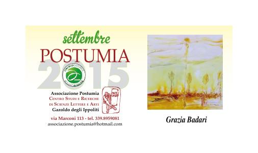 Mostre, Mantova, Gazoldo degli Ippoliti, 24 September 2015 Mostra Personale presso l'associazione Postumia, con la presentazione del critico Paola Artoni Inserito 10 anni fa 3 Mi piace Non piace più 2 Commenti 65 Visite Condividi Facebook Twitter Google + Commenti 2 10 anni fa Barbara Ghisi Premium Artista complimenti Grazia!! 10 anni fa Silvano Debernardi Artista bene Grazia, congratulazioni! Inserisci commento E' necessario effettuare il login o iscriversi per inserire il commento Login
