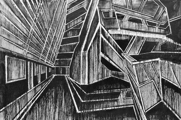 Nel ciclo di dipinti, intitolati District, l’artista napoletano prosegue la ricerca sul tema delle città contemporanee, che ha caratterizzato la sua attività degli ultimi anni, in uno stretto rapporto con la grande opera dipinta su muro – Paradoxical Room – per la collettiva NINa, che si è tenuta lo scorso gennaio al PAN di Napoli.