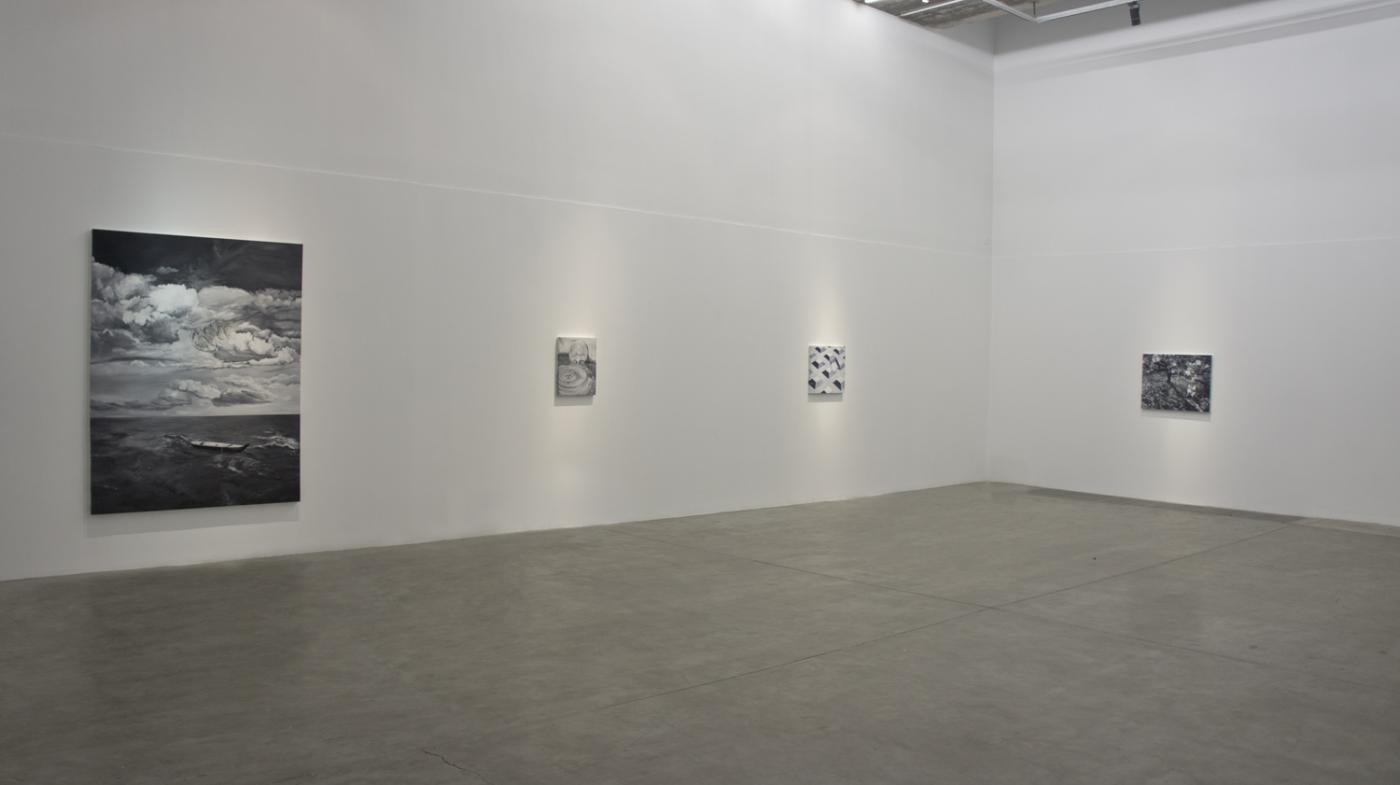 Catalin Petrisor’s better known works would be the oil paintings with schematic drawings on top, dissecting the surfaces, presenting a cut-and-paste state of mind that is driven by the need to overcome the gap between different realities, both factual and imaginary.This distance has been the main subject in his works and more recently emphasis is put on a distinct self-awareness within this feature. This series performs a reflexivity moving back and forth between the space and the explorer where two circular relationships are implied – firstly, one that is between the image and the artist, and secondly, one that is between the work of art and the viewer.