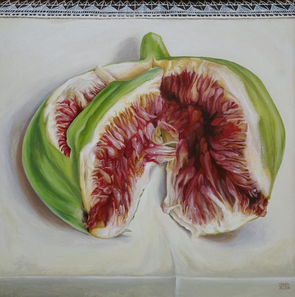 Fico e la Zucca di Roberta Dallara, di fronte a fotografie di donne e