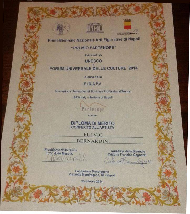 Il 25 ottobre a Napoli si è svolta la Prima Biennale Nazionale delle Arti Figurative patrocinata dall'UNESCO e dal Forum Universale delle Culture 2014 a cura della FIDAPA International Federation of Business Professional Woman BPW Italy sezione di Napoli nella quale il dipinto Criminal Heart di Fulber ha ricevuto uno speciale Diploma di Merito del PREMIO PARTENOPE .