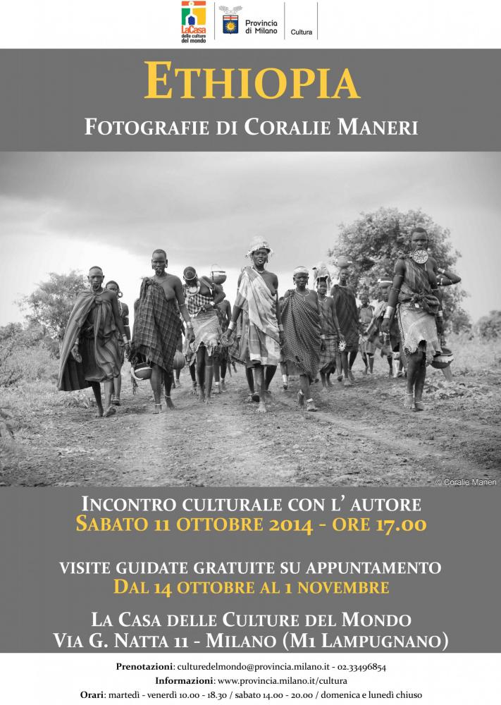 Dal 14 ottobre al 1° novembre alla Casa delle culture del mondo di Milano: ventisette fotografie in bianco e nero tratte dal reportage "Ethiopia" e realizzate da Coralie Maneri, che documentano progetti di cooperazione internazionale nel Paese e ritraggono scuole, carceri, cerimonie religiose e ospedali dagli angoli più remoti di un territorio estremo ed affascinante.