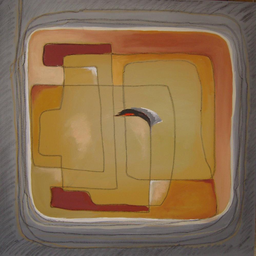 Geroglifici e civette, voli di uccelli (gli si può accostare lo scultore Antonio Paradiso che ama lo stesso soggetto), segni ancestrali come i labirinti, vegetazioni e polluzioni, grafismi, che riducono all’essenziale, quasi all’ermetico, il linguaggio, sono resi à-plat, laddove a volte solo un circuito di segni fa vedere con la mente la profondità, o solo un’ombra il volume presunto. La pienezza di questa pittura è data dal colore. L’artista non a caso - dati i riferimenti all’antico nei titoli e nei soggetti - ama il rosso pompeiano, l’ocra, l’azzurro… Il pittore sceglie se dare alle figure un maggior grado di morfismo (cfr. Illegittimo impedimento), un grado medio (cfr. Codici) o un grado basso (cfr. Ricomposizione): e però le forme di natura e cultura, non importa a quale livello rappresentativo appartengano, vanno comunque decriptate; dal segno bisogna risalire al denotato: mai questa pittura, anche quando è molto appariscente, si autocompiace, ma sempre invita ad andare oltre.