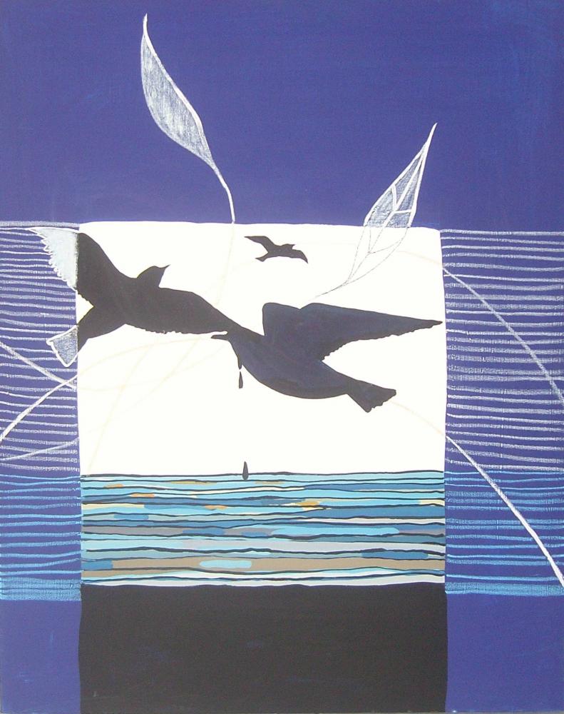 Due scelte estetiche molto diverse, evidentemente, se la prima si salda alla tradizione culturale di un’arte intesa come storia dell’arte, e la seconda, cui la pittura di Ostuni appartiene, che sceglie la via più impervia, ma forse la più stimolante per il pittore, della domanda sul significato più profondo dell’arte, un significato che possa rendere attuale la proposta artistica e che magari riconduca i simboli universali presenti nella sua pittura alla coscienza contemporanea. Così, ad esempio, la premonizione letta nel volo degli uccelli, o il ricorso ai legacci fisici che talvolta imprigionano le immagini dell’artista, possono essere il perenne anelito alla libertà umana che lotta con ciò ch’è scritto nel destino, ma possono anche investire istanze politiche ed etiche che appartengono alla cronaca di questi anni.