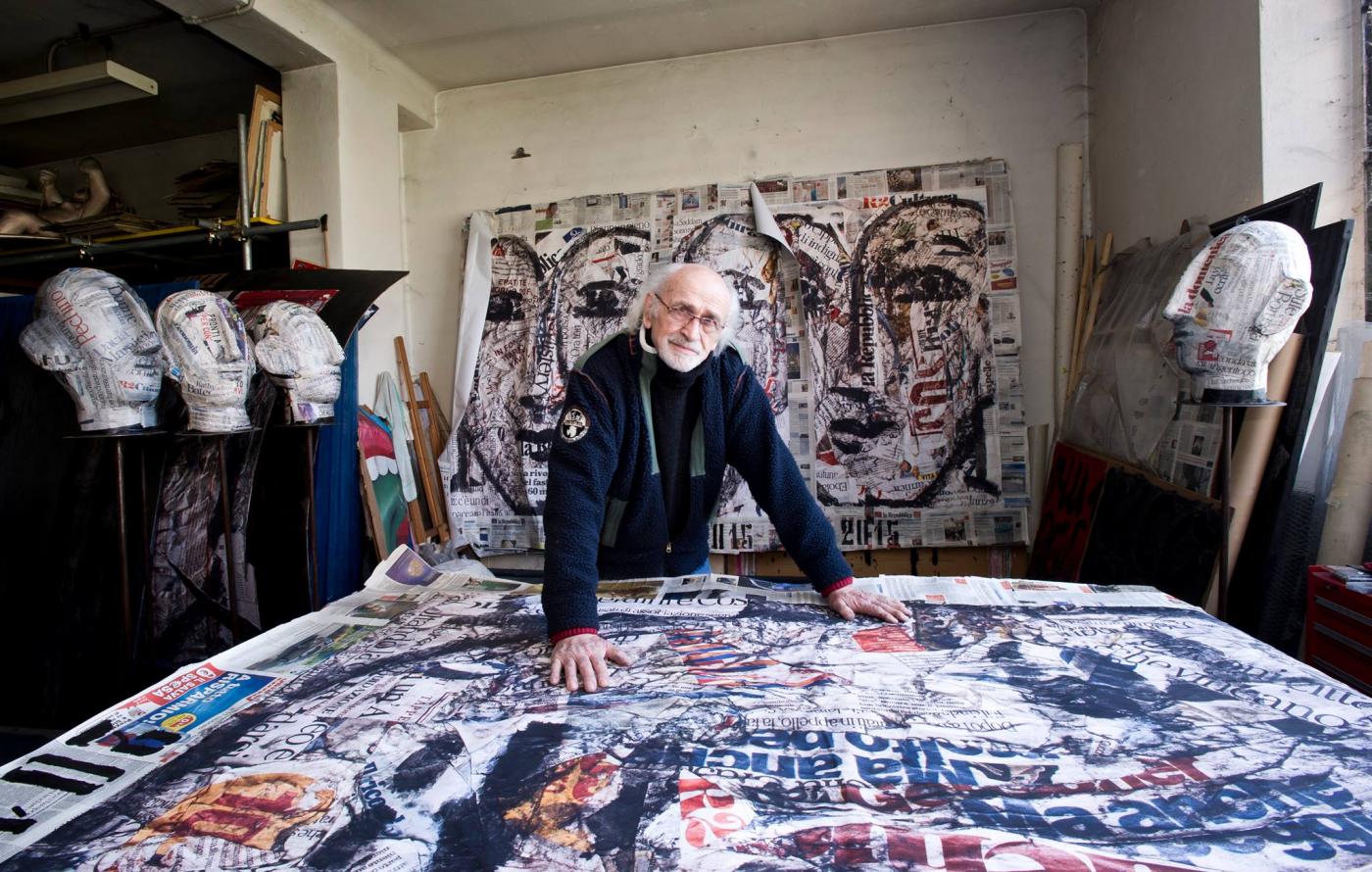 ... Una babele di parole, notizie, suggerimenti, moniti, recensioni nei giornali antropomorfi di Silvio Monti, che nello Spazio46 di Palazzo Ducale dispone sei grandi installazioni la cui materia prima è costituita dalla carta. Pagine di Repubblica lasciano la quotidianità per aggregarsi come materia nuova in un nuovo contesto, fisico e mentale... (Stefano Bigazzi)