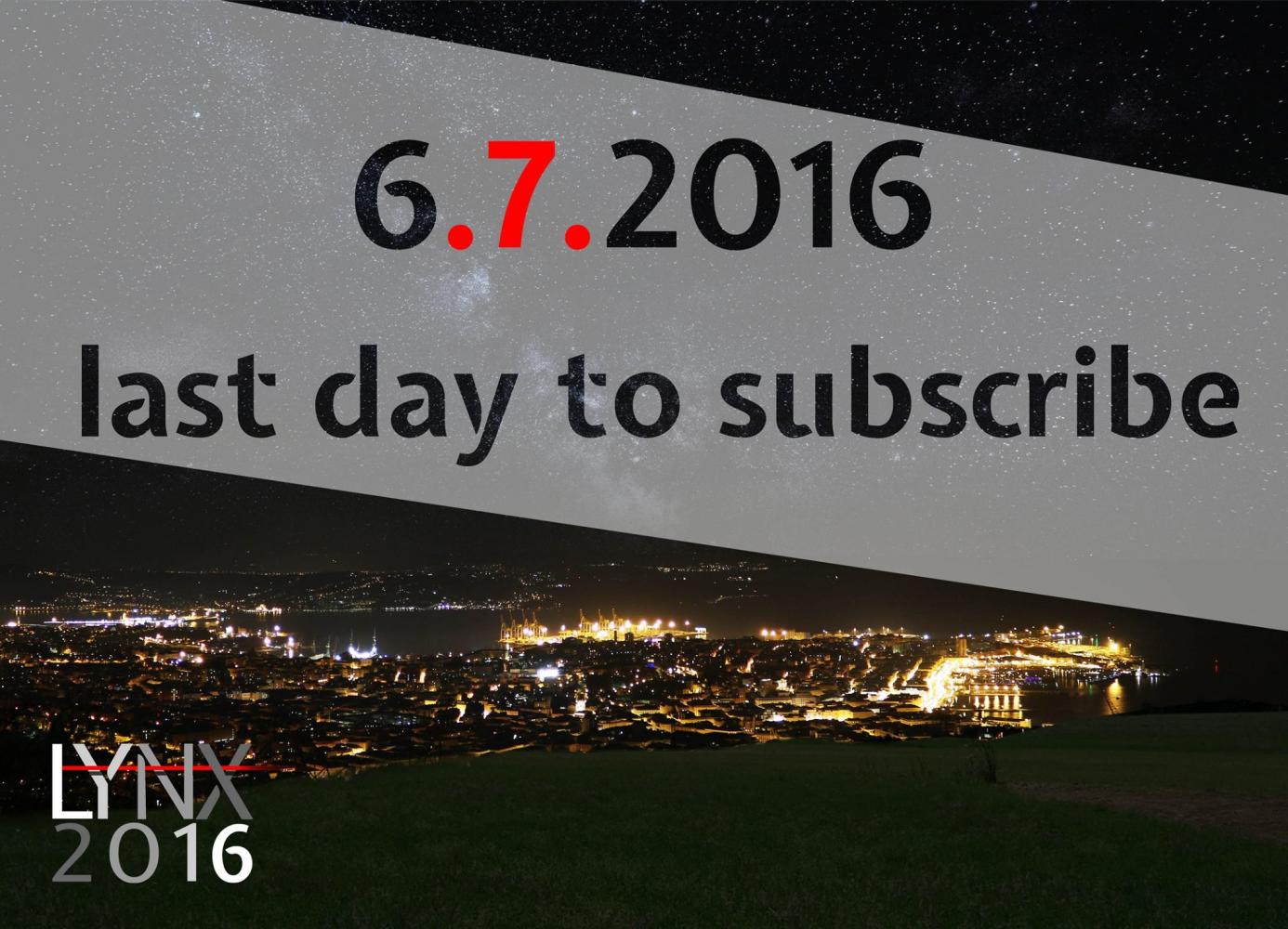 Concorsi, Trieste, 06 July 2016 Hai ancora poche ore per iscriverti al Premio Internazionale d'Arte Contemporanea LYNX 2016. Guarda il bando su http://www.premiolynx.com/bando.php Per informazioni contatta associazioneilsestante@gmail.com o il numero 389-6774508 Inserito 9 anni fa 1 Mi piace Non piace più 0 Commenti 129 Visite Condividi Facebook Twitter Google + Commenti 0 Inserisci commento E' necessario effettuare il login o iscriversi per inserire il commento Login