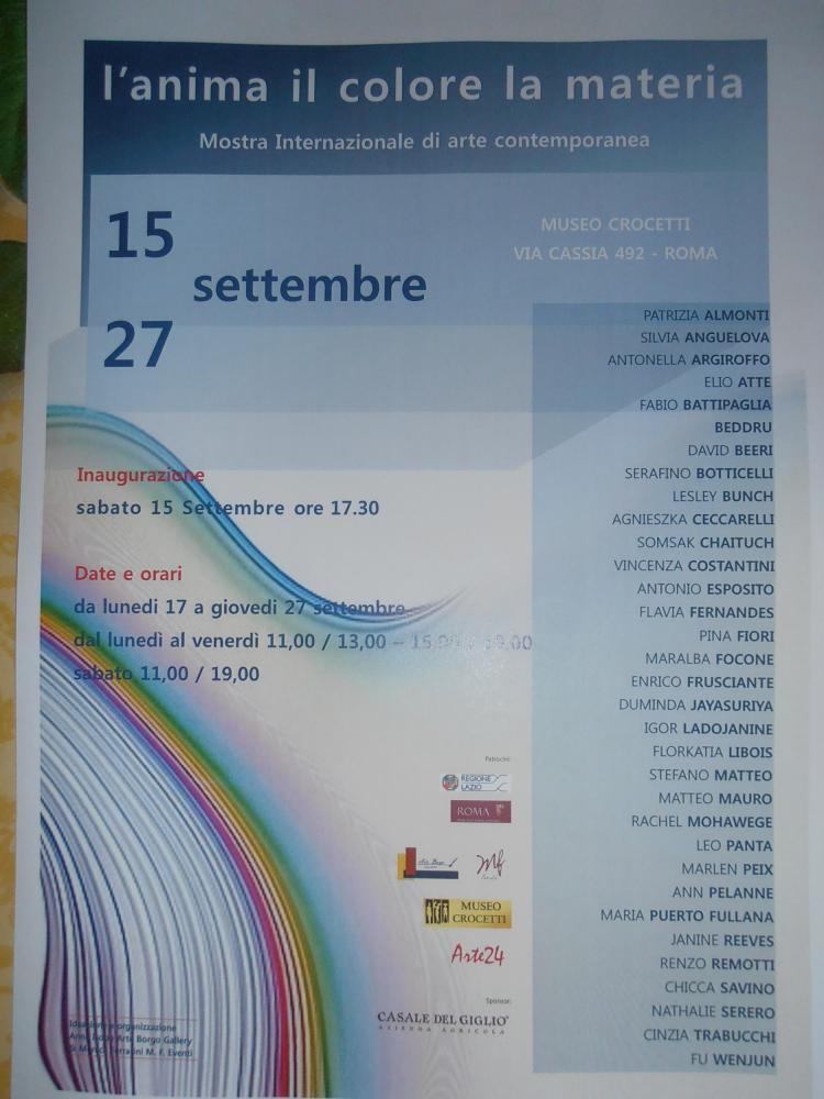 partecipo con una mia opera alla mostra collettiva presso Museo Crocetti Via Cassia n.492 dal 15 al 27 settembre 2018 a cura di Arte Borgo Gallery Roma.