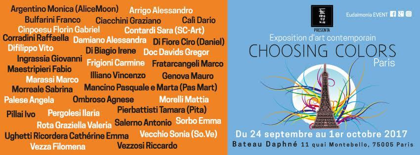 sono molto lieto di invitarVi all' inaugurazione dell' Esposizione Collettiva "Choosing Colors" organizzata da Eudaimonia Event che si terrà il giorno 25 Settembre a partire dalle ore 18:00 e durante la fashion week francese