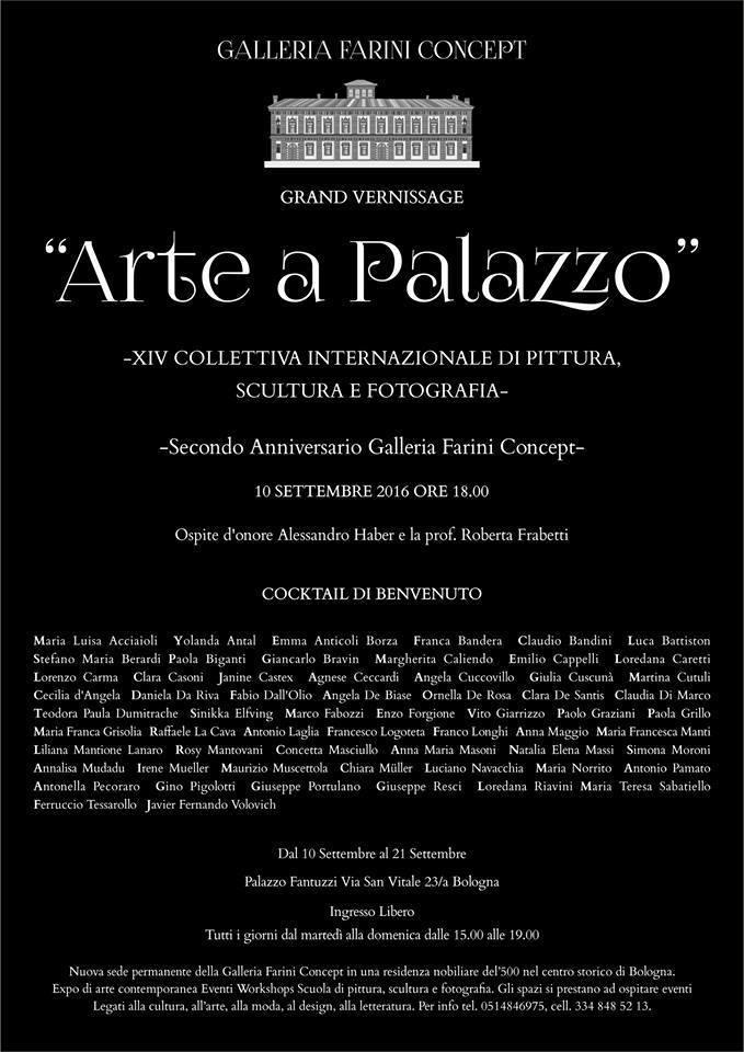 "Arte a Palazzo" -XIV COLLETTIVA INTERNAZIONALE DI PITTURA SCULTURA E FOTOGRAFIA -Galleria Farini Concept- , Via S.Vitale 23/a -Palazzo Fantuzzi -Bologna- dal 10 al 21 settembre