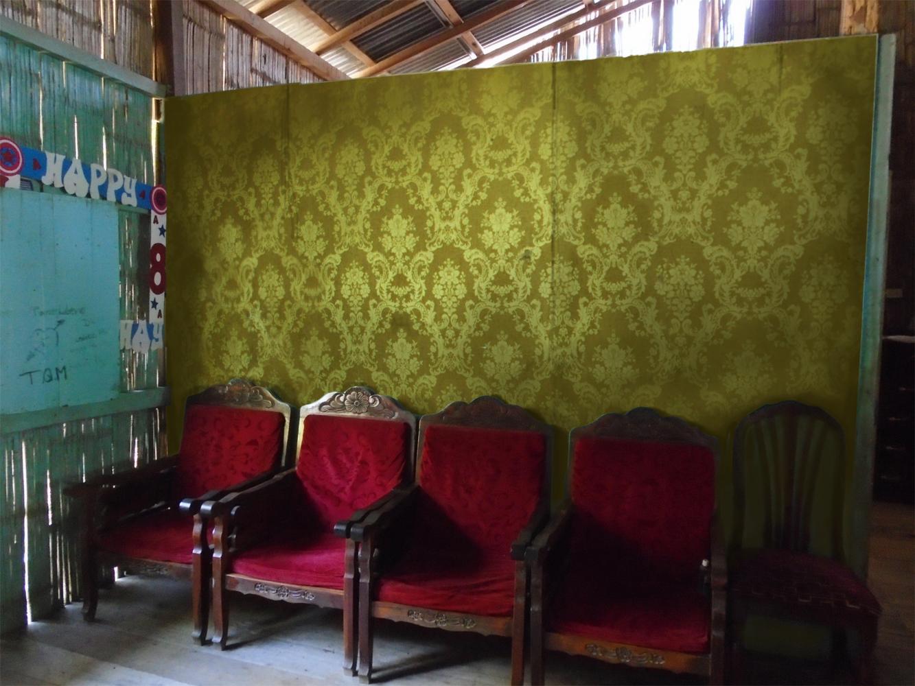 It is a project in process whose objective is the symbolic transfer of elements out of their usual place to, introduce them into separate spheres. In this case, I try to reproduce pictorially the upholstery that covers the "Yellow Room" of the Palace of Carondelet, historical seat and core axis of the government of Ecuador. And transfer it to the interior wall of a house located in the rural parish "El Limonal" belonging to the Daule Canton, agricultural area and rice paddle of the coast. The result of this dichotomous link, attempts to reflect on a version of the public-private, old schemes still to be redefined, related in turn to the state as a sacralized place.
