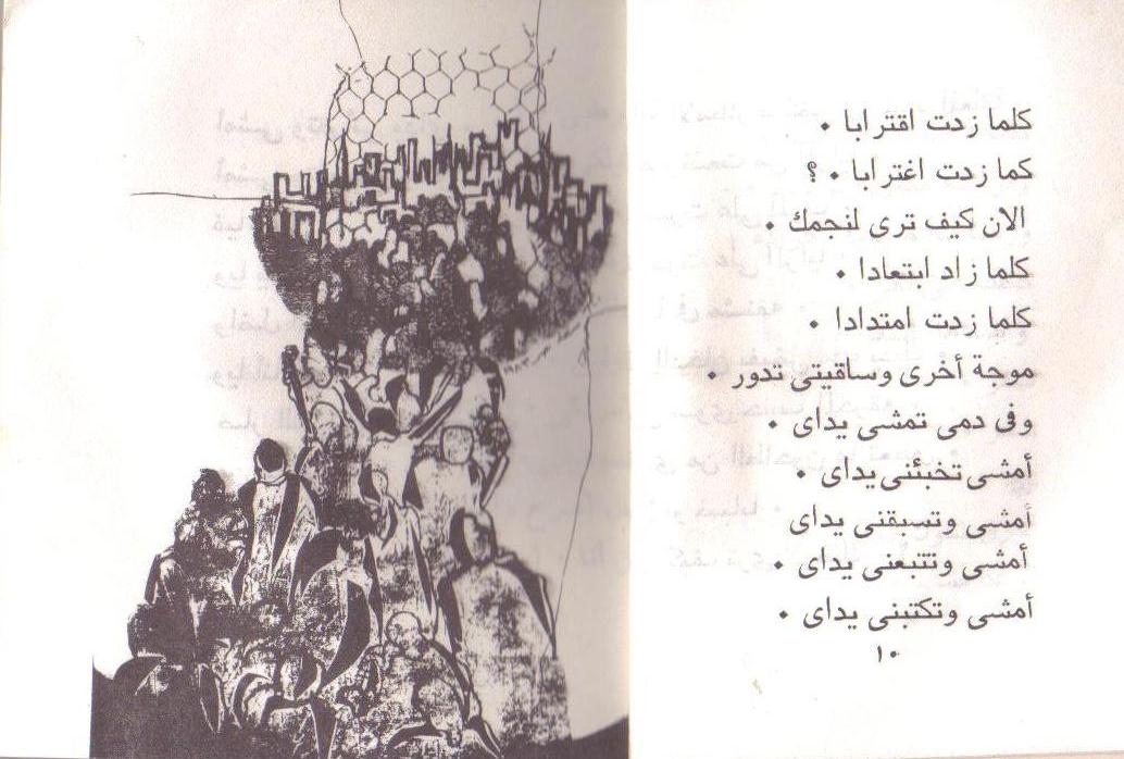 Selected illustration to poetry book 1983, " Have you started to counting your ribs?", for the late Palestinian poet Mo'in Bessesso, born in Gaza.