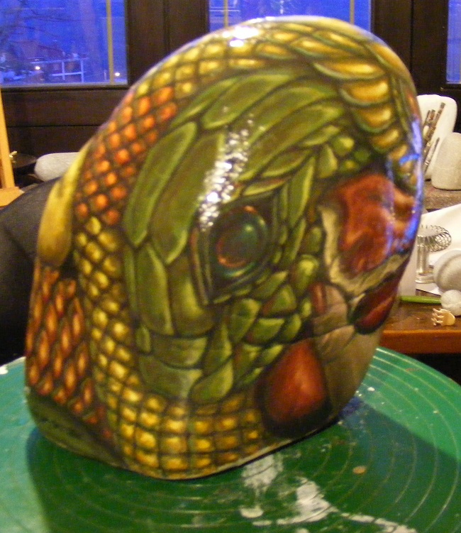 La mano dell'artista che entra nella pietra, riposiziona la mela rossa... morsa...