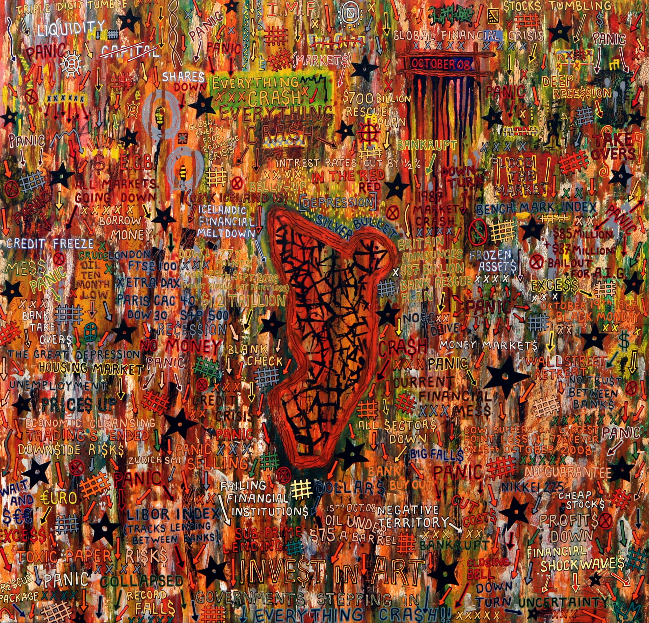 Invest In Art Pittura, Politico/Sociale, Acrilico, 94x89x3cm Tela Acrilico Inserita 14 anni fa 0 Mi piace Non piace più 2 Commenti 113 Visite Condividi Facebook Twitter Google + Non ci sono mi piace Commenti 2 14 anni fa Kevin Morris Artista Thankyou Romana. 14 anni fa romana rizzo Artista very beautiful! Inserisci commento E' necessario effettuare il login o iscriversi per inserire il commento Login
