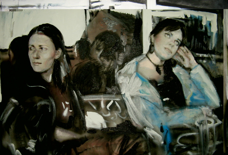 ....A partire dal titolo che trovo intrighante è tutta l'idea strutturale della composizione che seduce :le due ragazze sono sedute praticamente accanto ma sembrano subire "destini differenti":una è assorta e quasi sognante,l'altra sembra attratta da qualcosa che è fuori dal campo visivo del dipinto.Formalmente il dipinto è basato su un registro dove parti più definite (i volti) e "impressioni" più fugaci,di un segno e un colore più sciolto e libero ,si passano la consegna.Notare la definizione dei pantaloni per la fig. di sinistra-risolta con una economia del segno-colore e contrasto ,ma che è da vero virtuosismo percettivo.Complimenti!