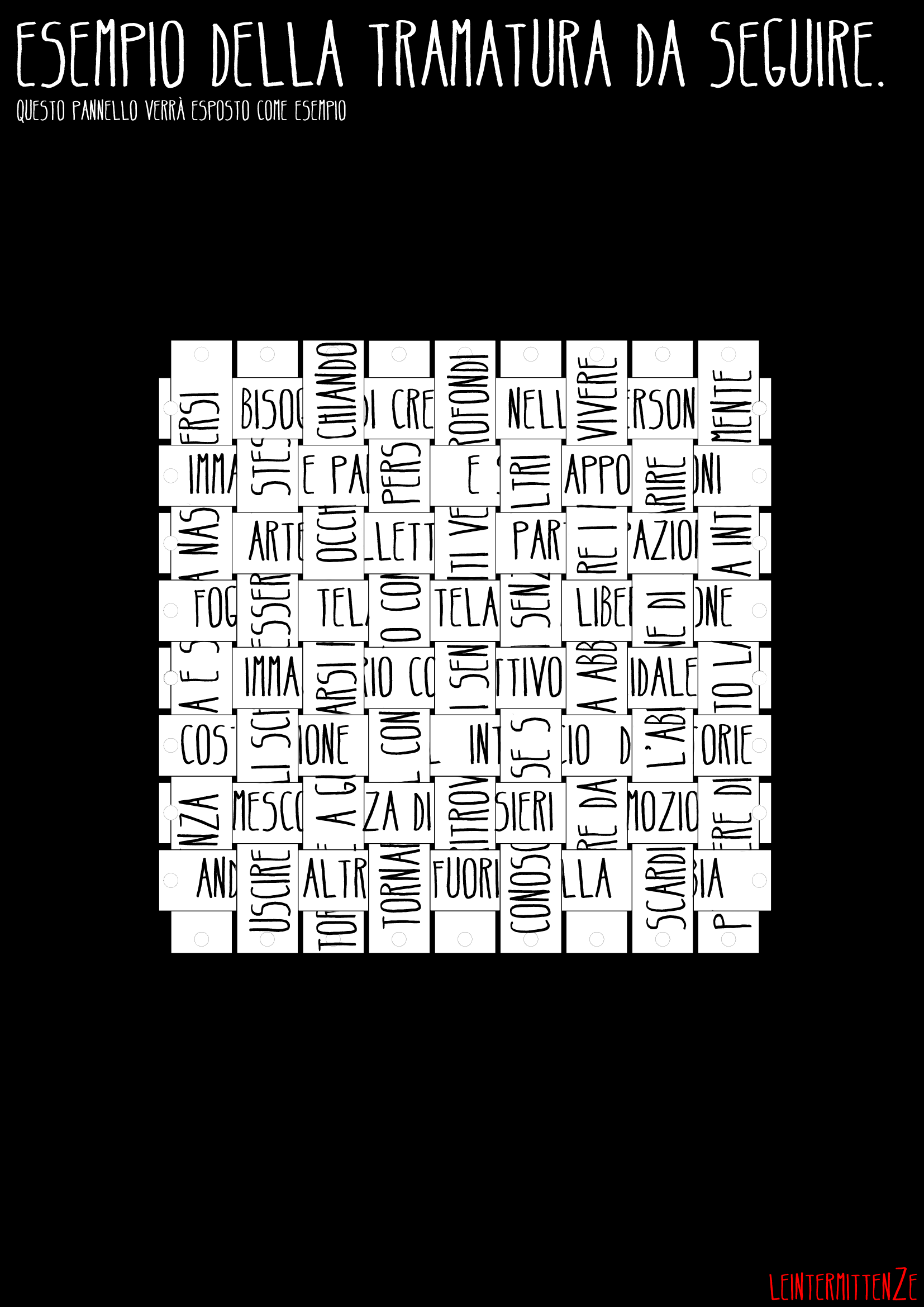 L'INTRECCIO DI PAROLE Installazione, Minimal, Materiali vari, 160x160x160cm Materiali vari Inserita 13 anni fa 3 Mi piace Non piace più 0 Commenti 175 Visite Condividi Facebook Twitter Google + Piace a 3 Tanya Bartolini Premium Artista - Milano Giulio Cesare Matusali Artista - Roma maurizio frigerio Artista - Vercelli Commenti 0 Inserisci commento E' necessario effettuare il login o iscriversi per inserire il commento Login