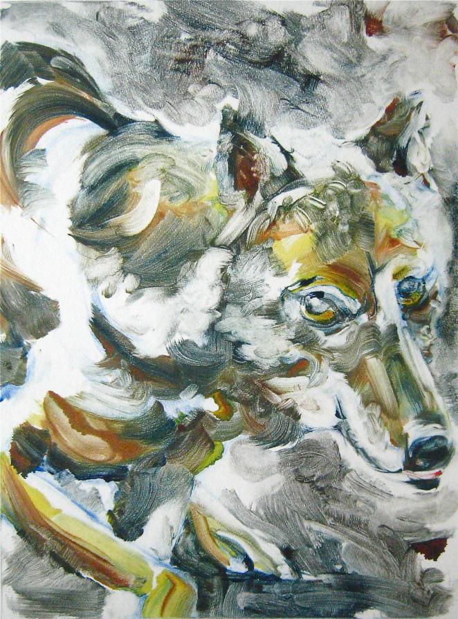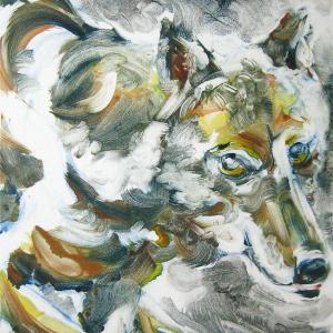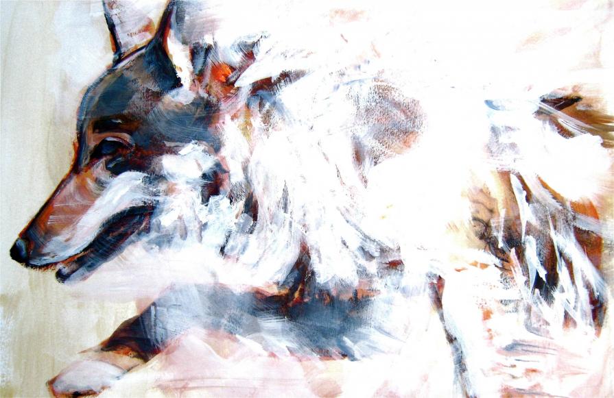 I have been working on the theme of the Iberian wolf for many years and this has lead me to look at wolves and their precarious existence around the world particularly in Yellowstone where they were reintroduced in 1995. The lack of comprehension by many people about one of nature’s main predators continues to concern and appall me. This collection of artworks of wolves who live in a sanctuary in Portugal (CRIL – Centro de Recuperação de Lobo Ibérico) is a tribute to these animals and those who care for them. Although they never can be put back into the wild they can maintain a stable and healthy life while at the same time teach the public that wild animals are an integral part of our planet with whom we must learn to share.