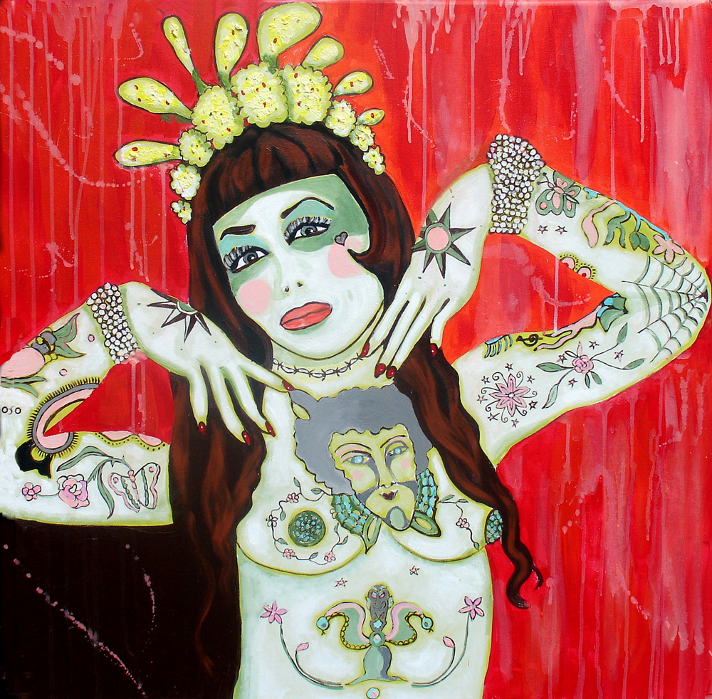 An intense portrait of a burlesque dancer who is covered with tattoos - symbols of unforgettable moments she has experienced. Her eyes express pride and the will to overcome pain - "when the going gets tough the tough get going"