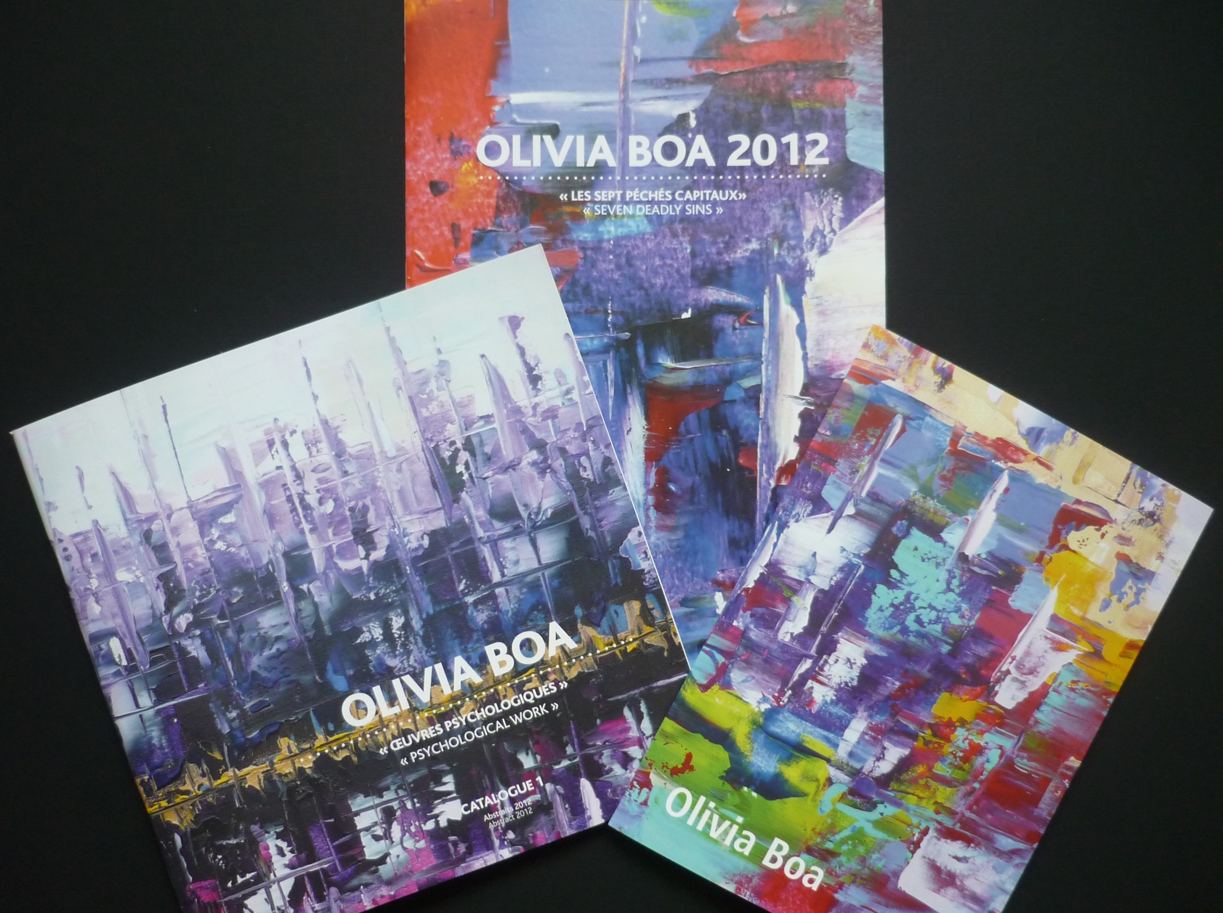 Duetto cataloghi: "Opere psicologiche" e "I sette peccati capitali" per la Svizzera: 22 CHF, per l'Europa: 24 Euro, per gli USA,: 29 $, spesa di porto incluso. Scrivere direttamente all'artista: oliviaboa@hotmail.fr