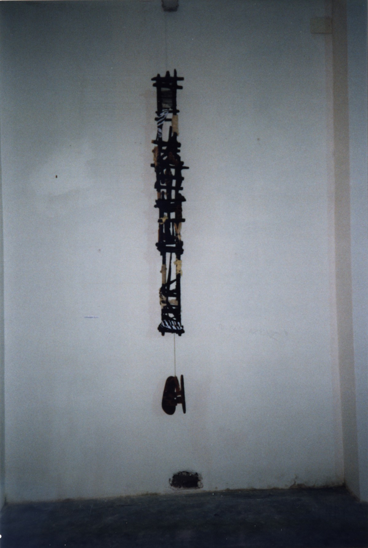 Scultura ispirata dal pensiero di S.Francesco. Sulla struttura di canne naturali coesistono pelli di vari animali che testimoniano il malessere ambiantale.L'opera pensile presenta simbolicamente un paio di sandali francescani che umilmente,mai calpesterebbero il creato.