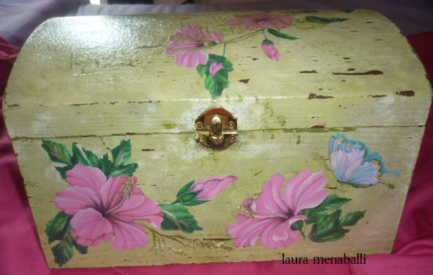 bauletto di legno realizzato con varie tecniche: pittura con acrilici,decoupage,tecnica shabby,tecnica spugnata