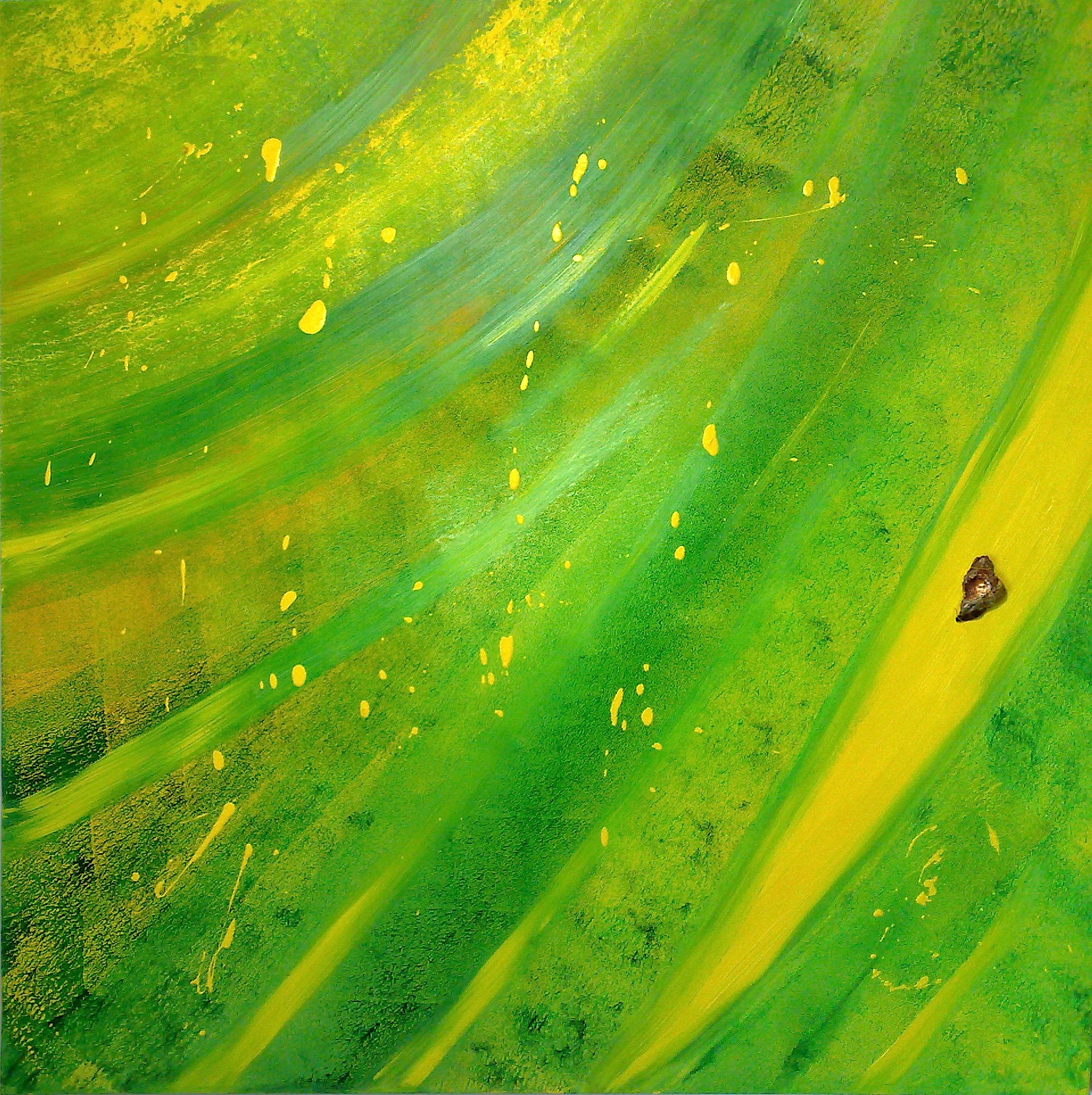 In the Ötztal Alps in the southernmost area of Tyrol (Austria), the Similaun is a glacier covered mountain with 3,599 meters. The meaning of Similaun could be seen as a variation of "Sam-Alu-Ana" - "white goddess Ana", with "sam" for white and shiny, "alu" for the Divine. We know the area by an archaeological find in the glacier, the glacier mummy is better known as the "Ötzi the Iceman". This painting shows a glacier bowl of the once holy mountain Similiaun with a white shade in the middle, the goddess Ana and an original stone from Similaun.