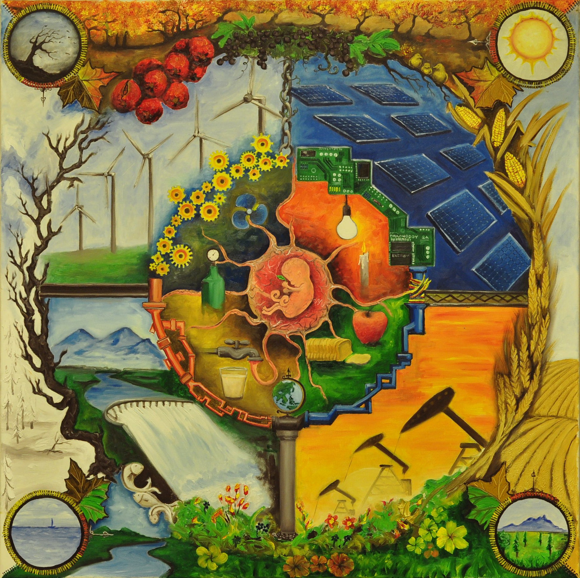 La vita trova la sua nascita nella natura sostenuta dagli elemmenti essenziali del vento, acqua, terra e fuoco. Nel ciclo della vita, nelle stagioni dell’inverno, primavera, estate e autunno, la relazione tra natura e energia manifesta come da questi respiri di vita dipenda la soppravvivenza dell’uomo sulla terra e ne stabilisca cosi la responsabilità per la sua salvaguardia.