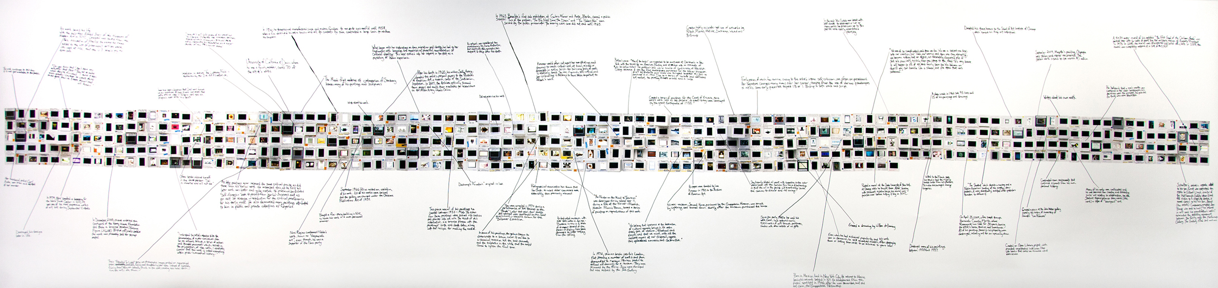 All slides were grouped and arranged together by artists' last name, and each artist was researched on whether they or someone were responsible in the preservation or destruction of their work.