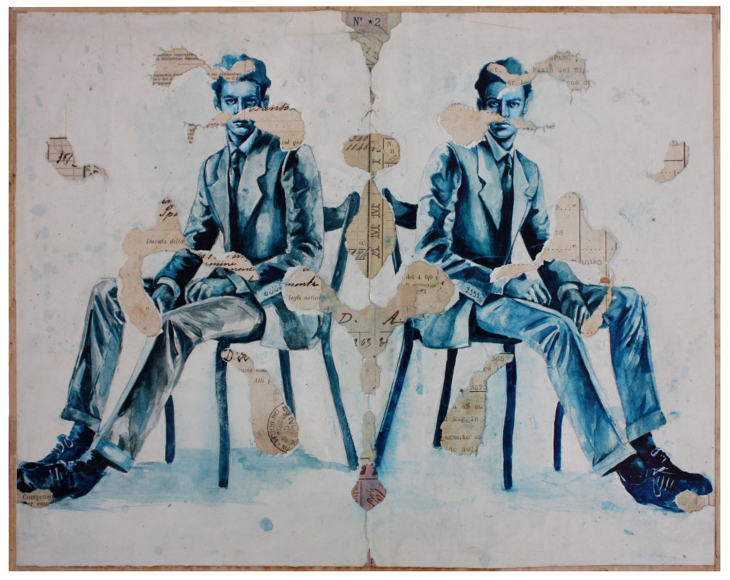 Come le macchie di Rorschach rivelano, grazie a ciò che evocano, le nostre modalità di percezione, cosi strappi simmetrici sulla carta dipinta lasciano intravedere un’altra realtà, evocando, a loro volta, un racconto a più livelli.
