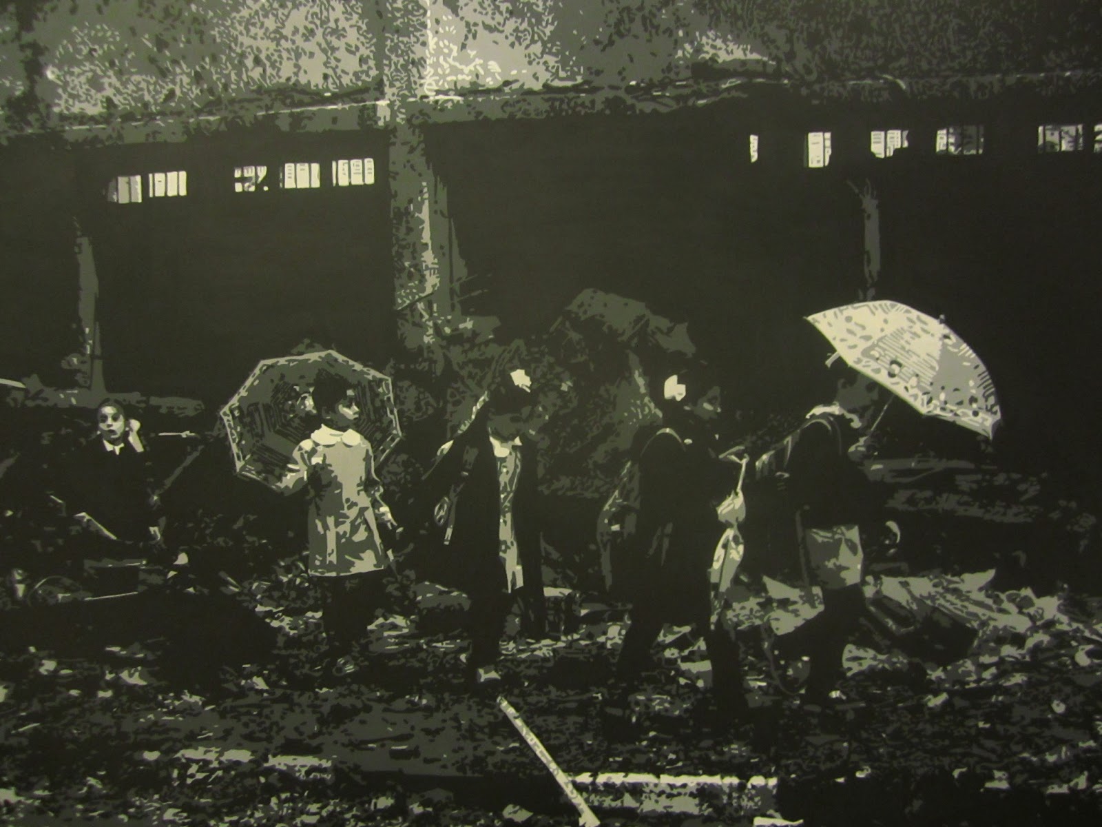 La ricerca dell'inafferrabile spirito del tempo ha inizio sul web dove vado a caccia di foto che raccontino di un luogo e della gente che lo abita e nel mio vagare lego insieme soggetti diversissimi che in comune hanno una sola cosa: vivere nel tempo presente. Le immagini, riportate disegnate sulla tele, son dipinte coi pennelli e con lo spray ed è il colore, oltre alle velature, a focalizzare alcuni particolari, a creare i volumi, a determinare una sorta di vuoto narrativo attraverso la tecnica dei distacchi tonali. Lo ZEITGEIST così i filosofi tedeschi nel tardo Settecento battezzarono il “genius seculi” -si appalesa in special modo nei contrasti, nel dualismo tra tradizione e modernità. in un’epoca, la nostra, che cancella le identità locali, nel progredire di un’osmosi culturale continua e inarrestabile. Un fluttuare reso da con variazioni cromatiche che registrano differenti temperature. Bianco e nero, per le bambine, tutti in fila coi loro ombrelli aperti, che camminano sulle macerie del teatro di un imprecisato conflitto. Rosso, invece, per la sfilata delle Grid Girls coreane, belle ragazze aspiranti miss che allietano i piloti coi loro sorrisi internazionali. La serie di dipinti da corpo a una geografia errante che mette fianco a fianco le favelas brasiliane con le raffinerie saudite, i minareti del Cairo assediati da una selva di parabole alla sagoma di una donna velata che mai incontrerà l’ebreo ortodosso a colloquio con un manifestante palestinese.