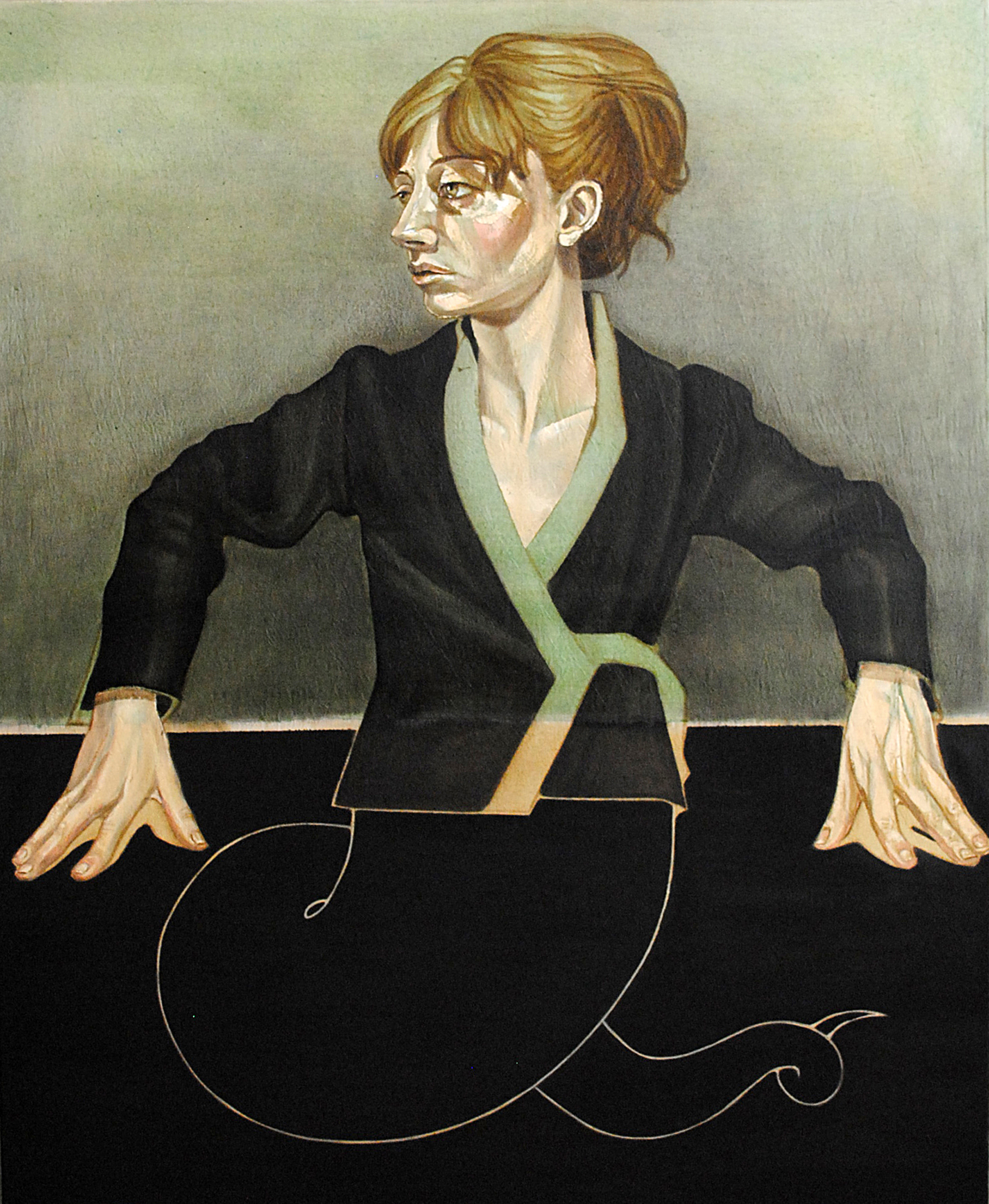 Infatti si direbbe che soltanto la forma sia garante dell’identità di ciò che esiste: delle creature come delle cose. Questa figura é strutturata, palpitante, eppure chiusa e segreta, come uno scrigno che custodisce, gelosamente, la verità del senso che potrebbe assumere la sua vita. Questo è il suo tesoro inalienabile! La sua identità è questa perla ”oscura” che cresce lentamente, anche a sua insaputa, rivelandosi-in questo caso- attraverso una "metamorfosi". Cerco quest’obiettivo attraverso un impianto scultoreo, risolto con tratti decisi. Mentre sempre il colore è affidato a poche, gestuali, note timbriche contrastanti che, come in questa opera modellano con vigore un corpo reso nobile dal silenzio che l’avvolge e la protegge.