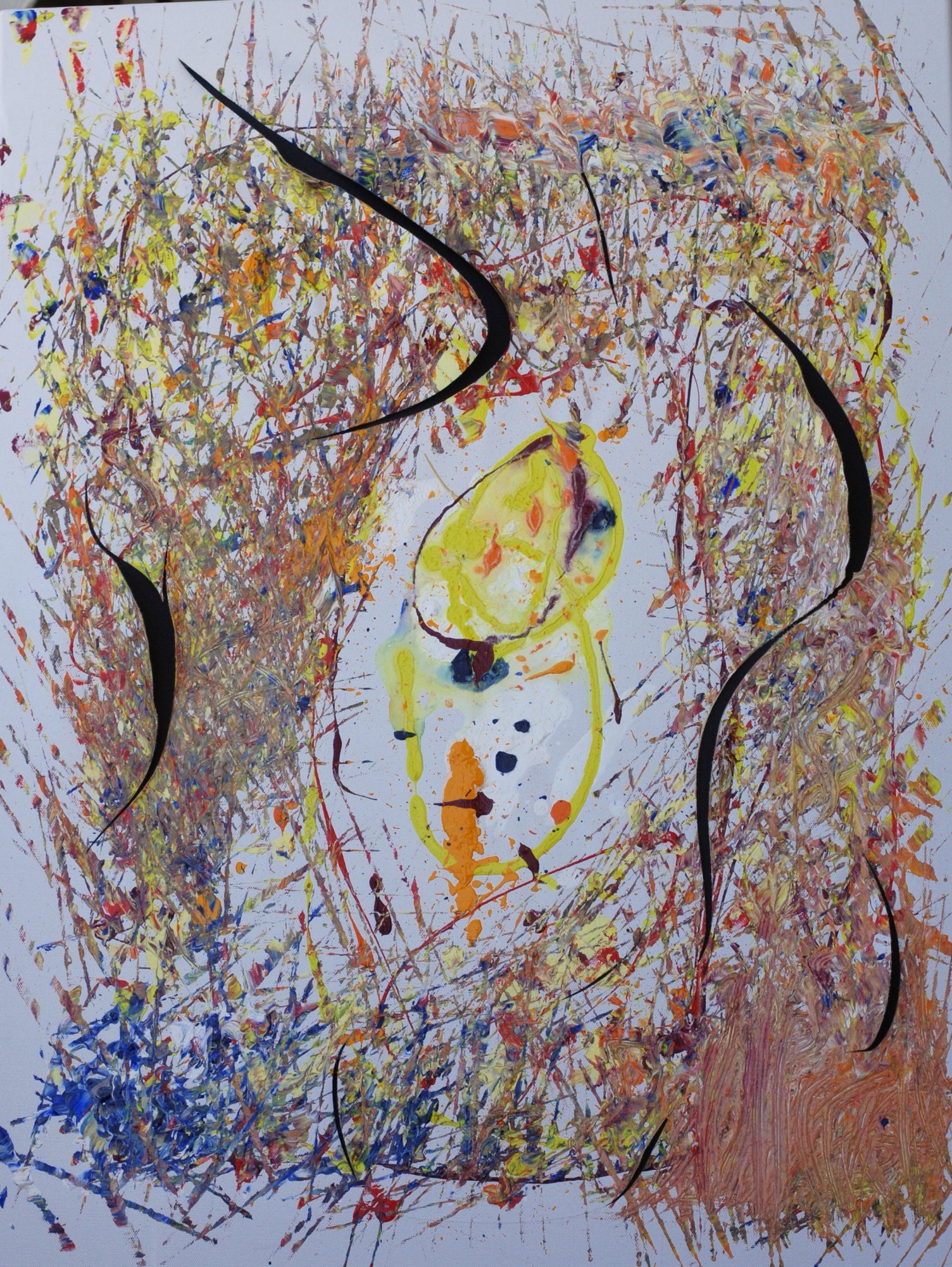 I tagli sulla tela con sfondo in cartone nero rappresentato l' inganno e la morte che hanno gli spermatozoi che falliscono.