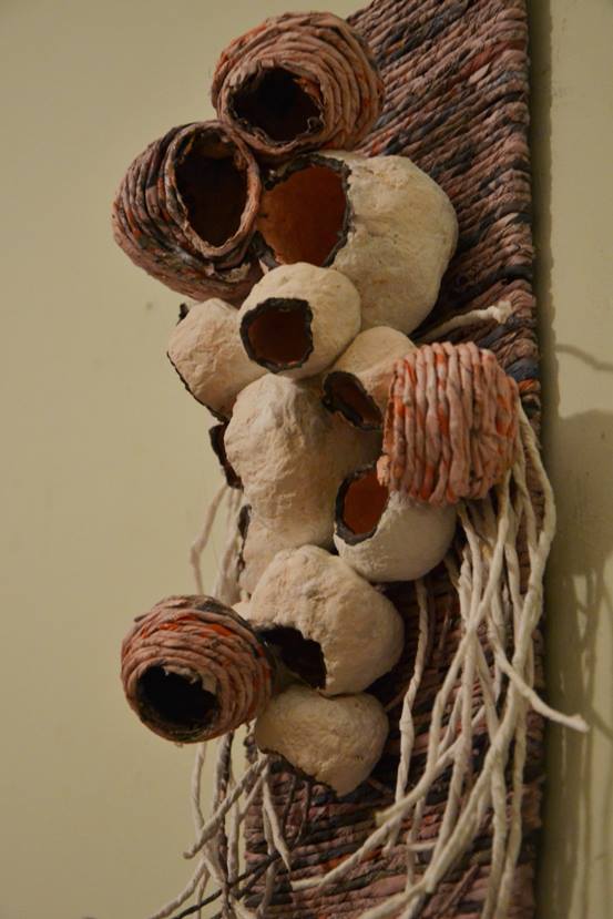 Un bacio è un apertura fisica verso un altro , un linguaggio ricco di pulsioni emozionali che utilizza sintassi diversissime. Come un grappolo di celle esplose o di contenitori di sentimenti che aprendosi si diffondono Questa diffusione o comunicazione raggiunge l'altro attraverso fili sottili in grado di penetrare l'anima . Il lavoro eseguito con cartapesta e fili di giornale .