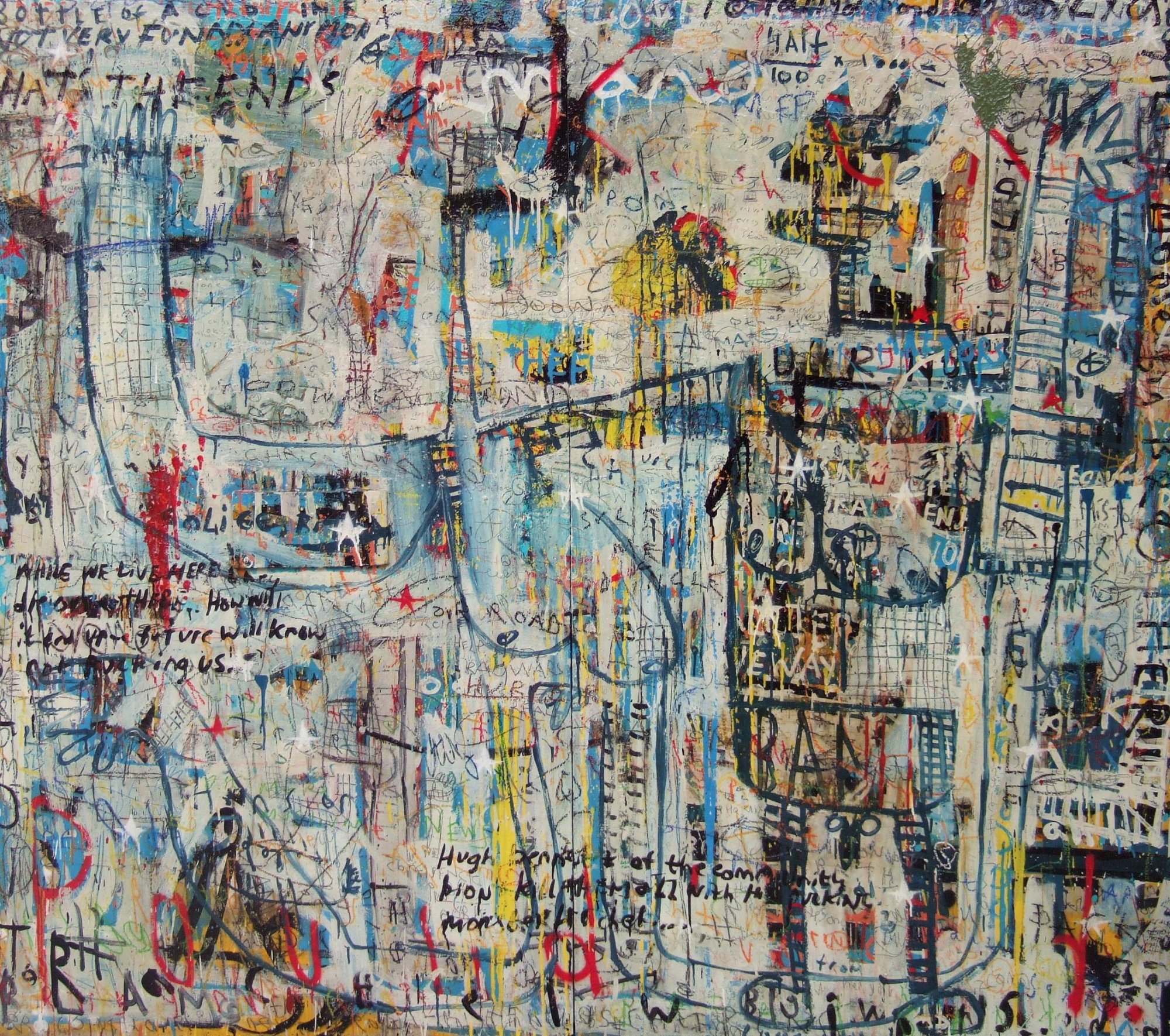 starting a work if quite often the fun part, it then quickly reverts to hard work... you are continously trying to pursue a differnet direction with the work itself... trying to surprise youself about it... really to do something different.. and this is the structure that i hope i have... the style element is pretty clear now... style portrays a way of working... to create you must destroy and that is what you have here inn the works.... a battle of surprise and control... quite often as a i mentioned the start of the work is the best part... well the actually making of the wooden structure is even better because its as if the shape talks with you... how do i start a piece well the overall size of the work and its out line, because they are not often rectangle in nature tell you what it wants..... but that's what working with art is i suppose... an understanding of what you want and how you go about getting it.... some of the paintings can measure upto 12ft in hight to 26ft in width... none of their out come was predicted... the end result is more intuition and yeah luck...!