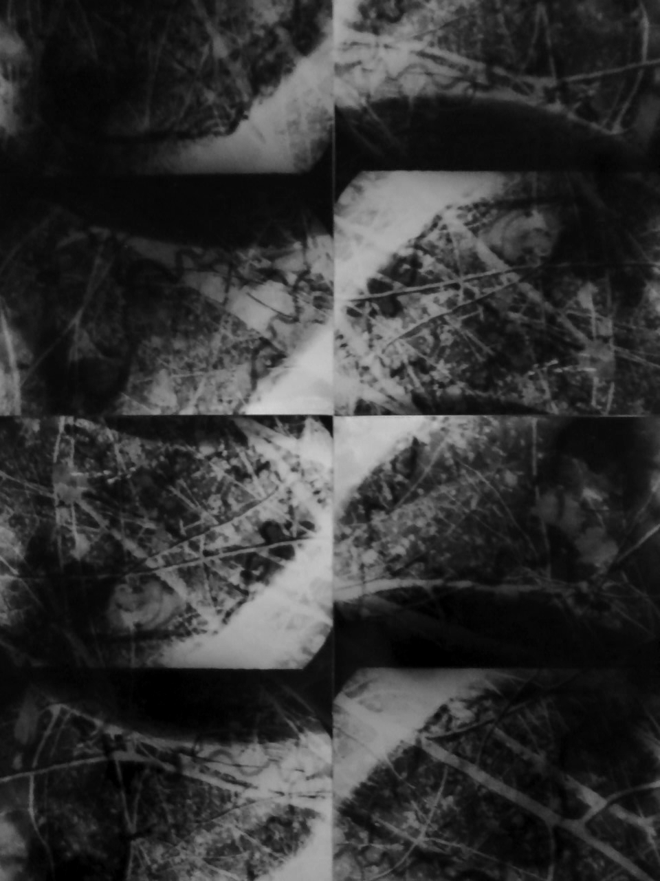 lacerti di visione 35mm ai raggi X dell'inerno del cuore del padre dell'artista sovrimpressi per assonanza formale agli scatti di alberi invernali del figlio dopo molti anni. Autobiografia familiare verificata dall'argento.