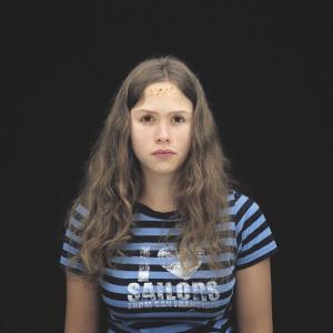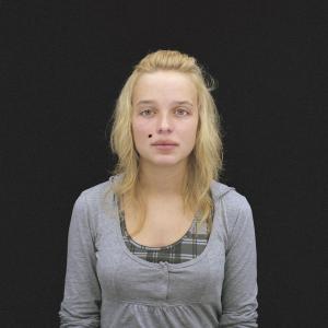 [...] Croyants sans le savoir ? Warning, c’est l’avertissement, l’alarme, des feux de détresse… Global Warning*, si proche du Global Warming, le danger qui guette. Pour Patrick van Roy ce pourrait être ‘un bonheur à court terme, paradisiaque et dévastateur’, ‘une nouvelle religion dont les églises seraient au milieu du salon et dont les apôtres, tels des barbies parfaitement impersonnelles, trôneraient sur l’étagère de notre enfance.’ Enseignant à l’INRACI à Bruxelles, Patrick van Roy a fait poser ses élèves de 2006 à 2009. Un important travail avec Photoshop a été réalisé pour mêler à chaque fois les traits d’une fille à ceux de trois garçons et fabriquer ainsi une galerie de visages qui n’existent pas. Patrick van Roy : ‘C’est personne, des filles idéales comme le serait la poupée Barbie, le jouet pour lequel on a le moins de respect car il est remplaçable : un objet basique et bête auquel on coupe les cheveux ; une beauté désincarnée et froide.’ La frontalité est forte et pourtant les yeux ne nous regardent pas. Ils sont sans reflet et paraissent du coup si vides, comme figés pour l’éternité. Et chacun de porter sa douleur, son stigmate de sang coagulé : ‘de ces blessures qu’on inflige aux ados et qu’ils s’infligent à eux-mêmes, mais ne saignent pas, comme s’il s’agissait de fascinants et attirants cadavres’[...]