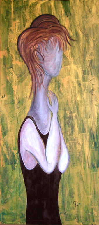 Uno sfondo che mette in risalto il soggetto impreziosendolo della sua magnifica semplicità.Un Modigliani rivisto con la tua mente,allunga il collo e accorcia le braccia,togliendo la visione delle sembianze,come se il suo messaggio fosse quello di non poter arrivare a comprendere il suo io.Poi l'osservatore è posto al dilemma della sua scelta,capire se è l'anima anche con la sua leggerezza ad offuscare la personalità esteriore,o è l'aspetto che non ha fattezze perchè la sua anima è inesistente.